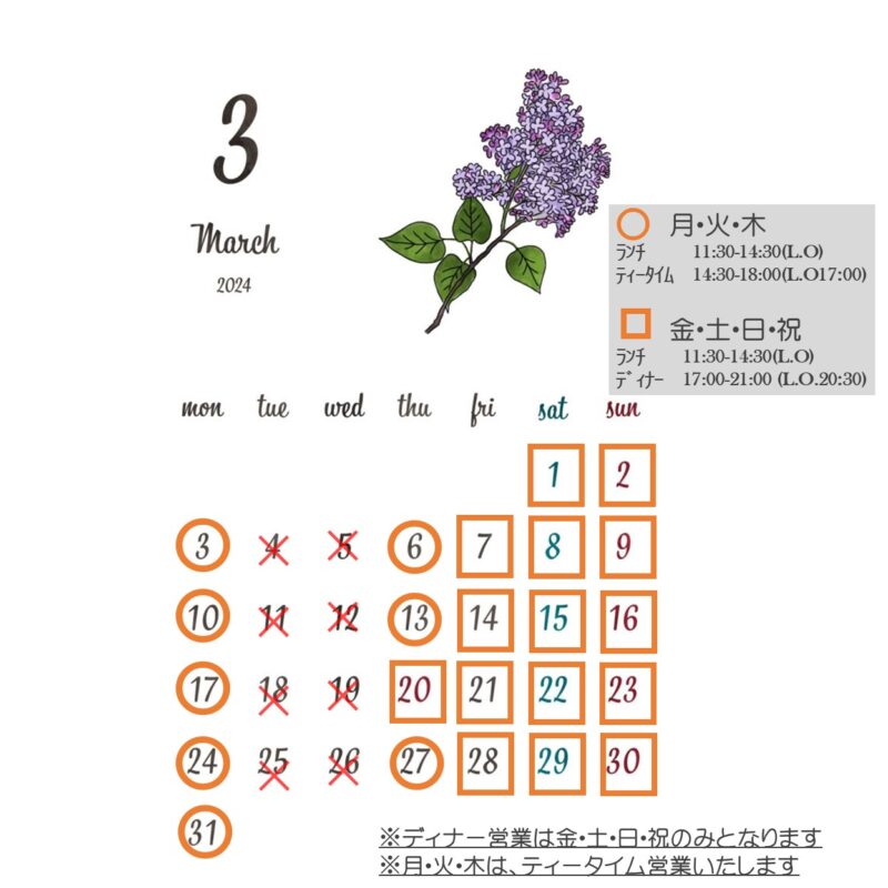 2026年3月 営業日のお知らせ