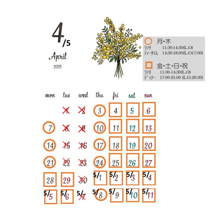 2025年4月 営業日のお知らせ